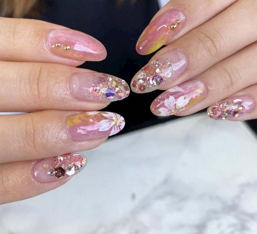 春だからこうゆう感じのネイルにしたいな!