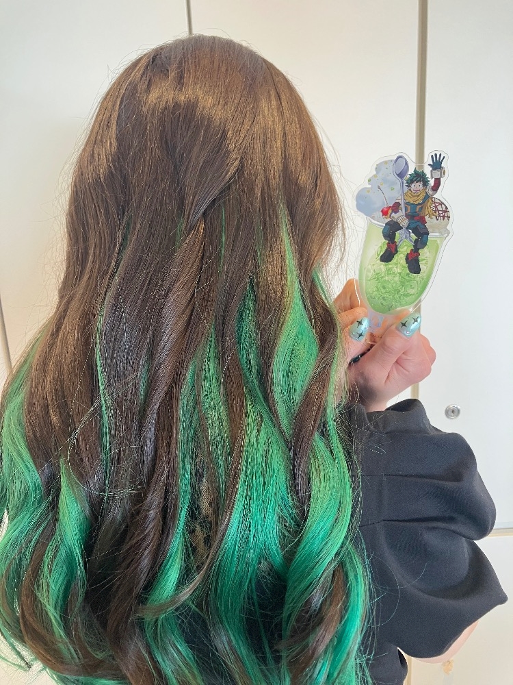 髪とネイルを緑にしたの