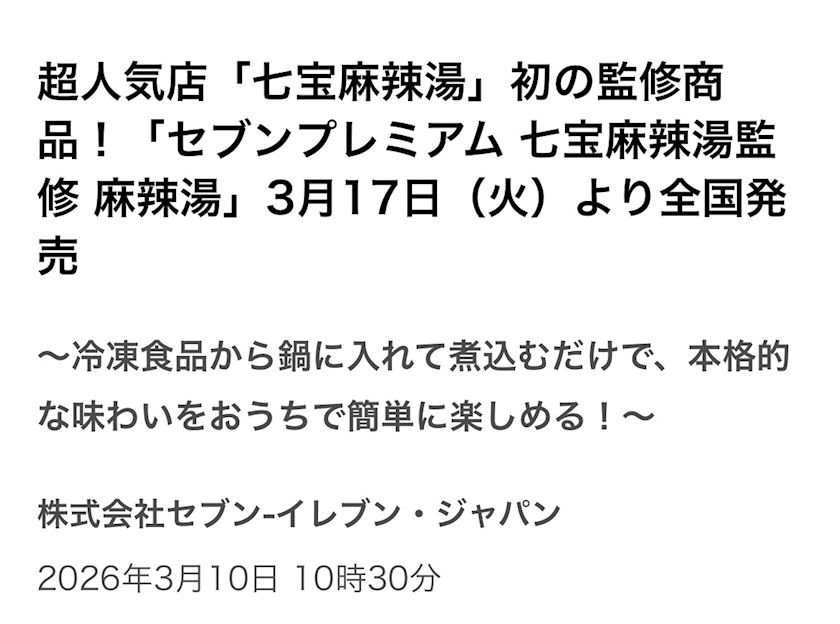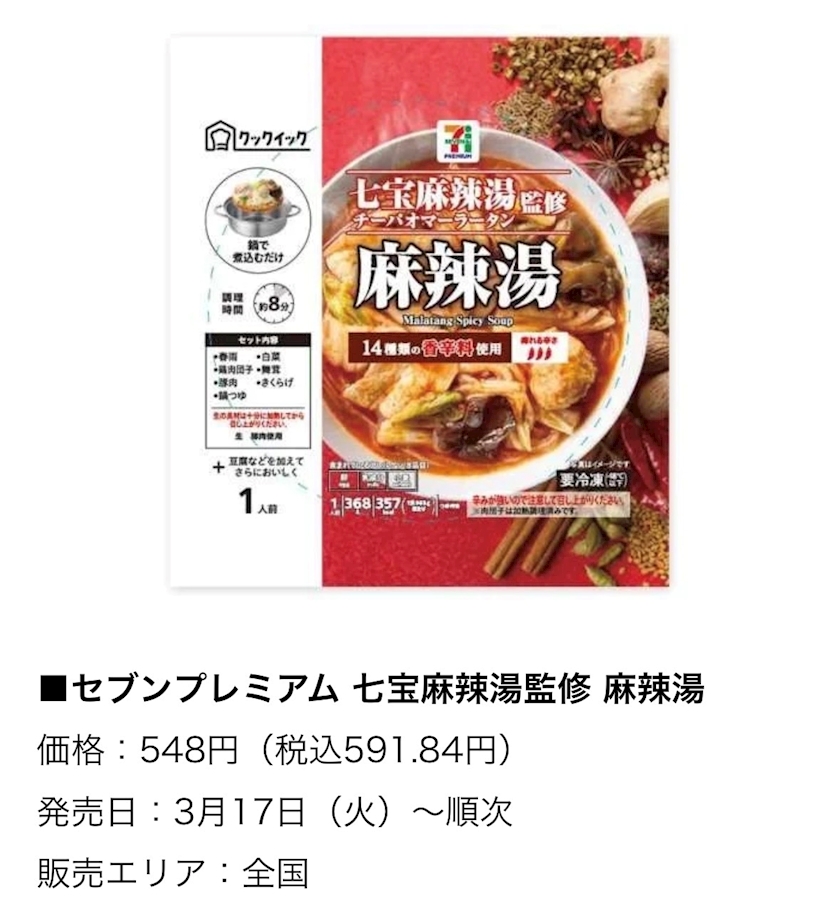 食べてみたかった『七宝麻辣担』の冷凍食品がでるの‼️