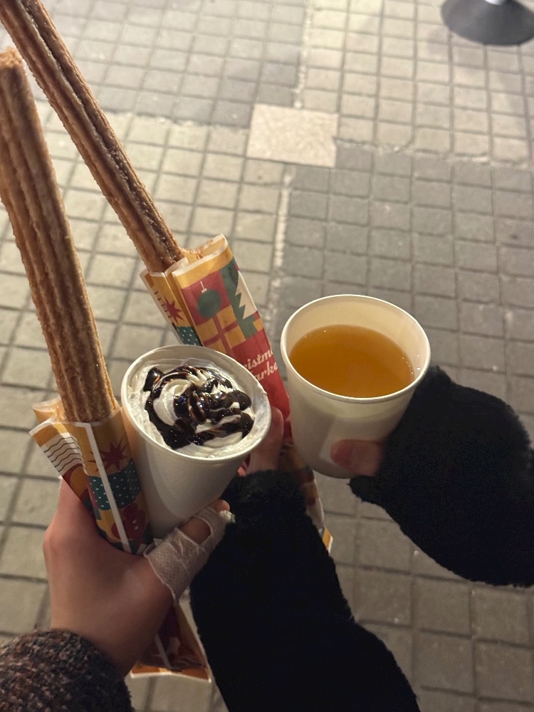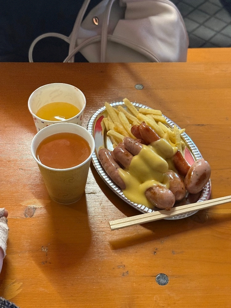 外寒いけど食べ物と飲み物が