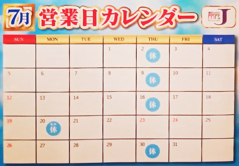 月曜日が定休日振替