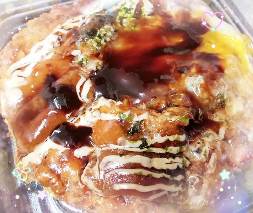 お好み焼きとサラダ