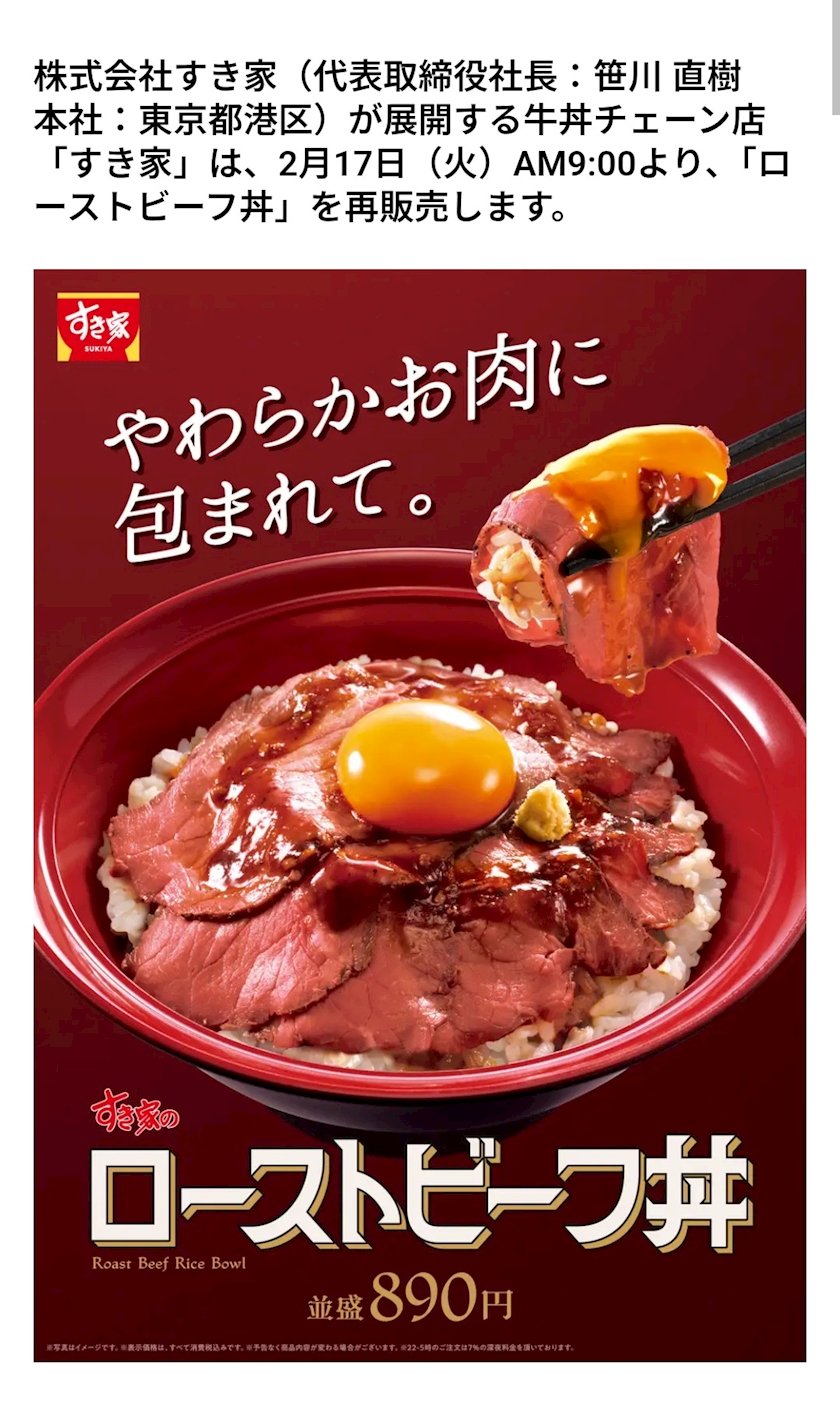 すき家で🐂ローストビーフ丼