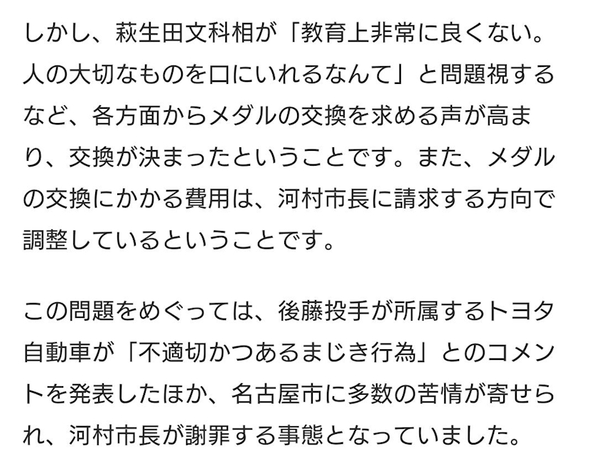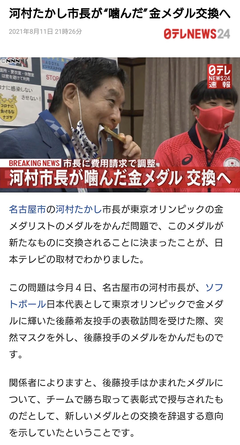 メダル噛んだニュース