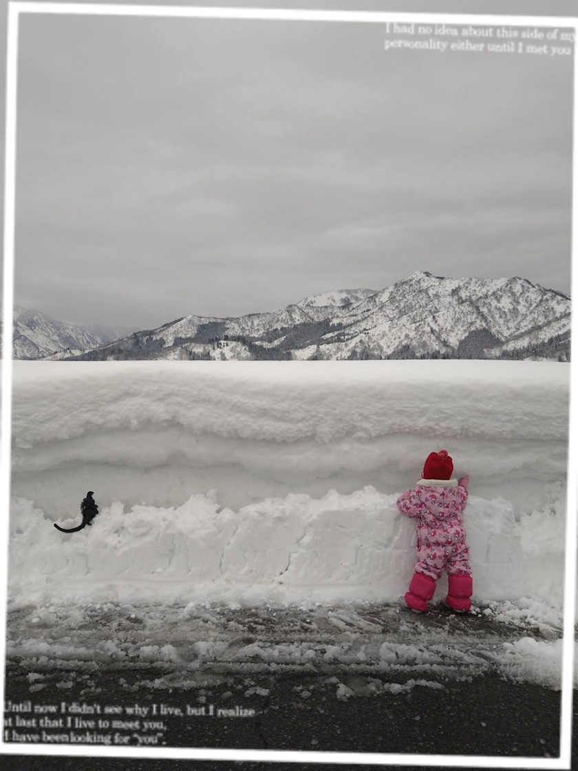娘ちゃんの背丈以上の雪ーっ