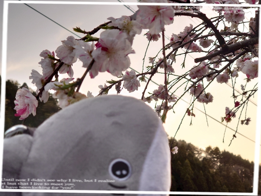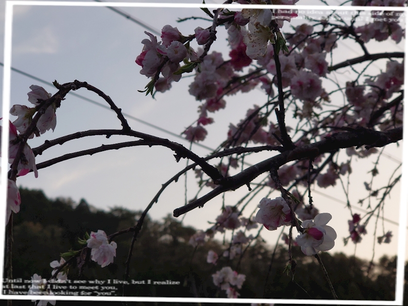 庭先の桃の花を愛でたり