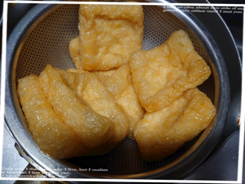 油揚げを油抜きしてー