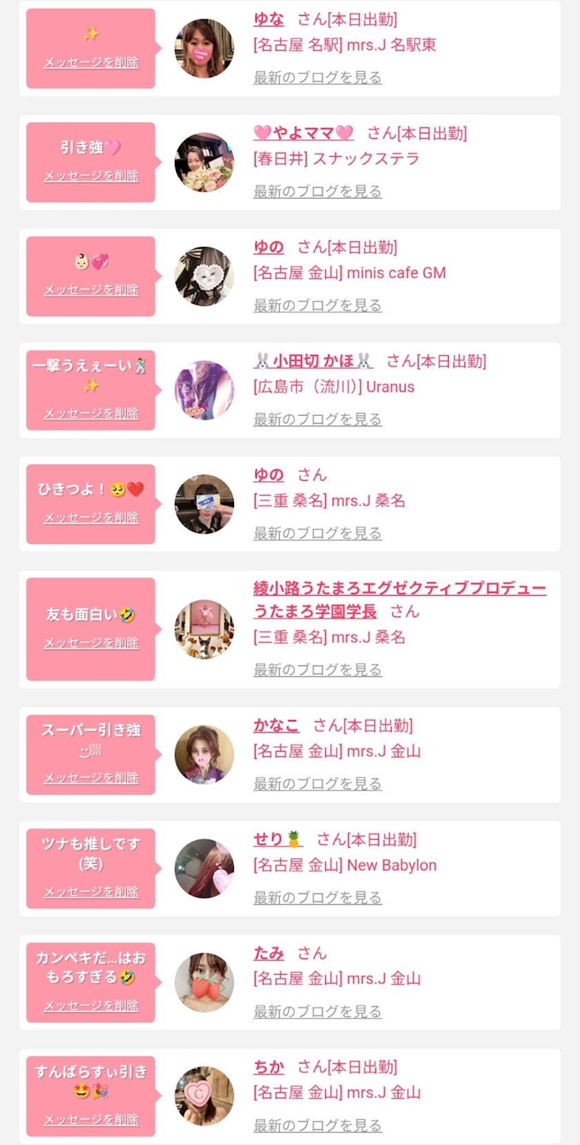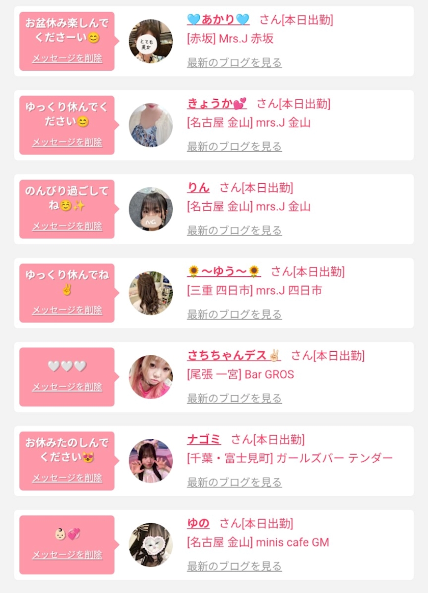 系列店のキャスト様のブログで