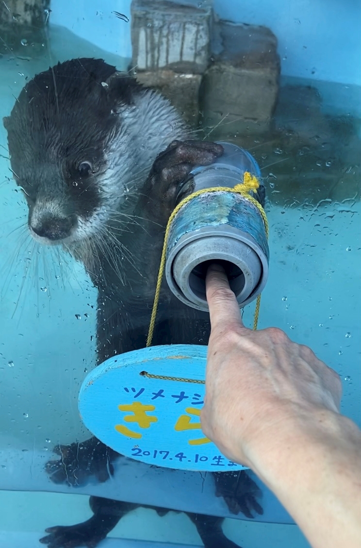 ツメナシカワウソと握手♪