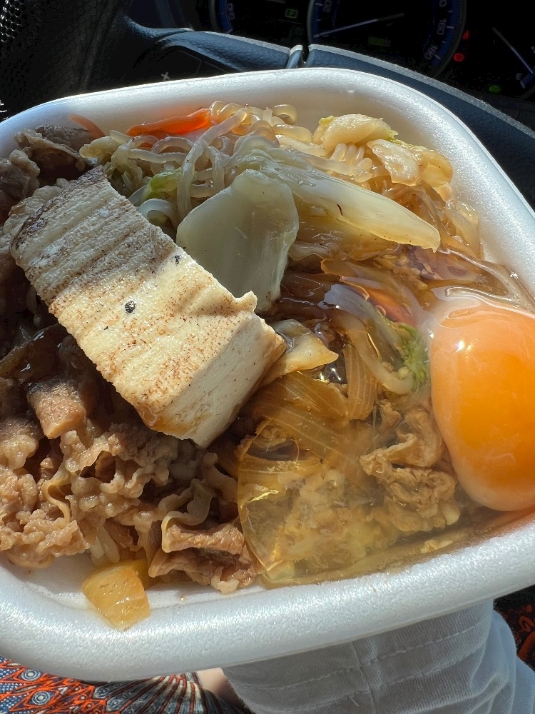 月見すき焼き牛どん
