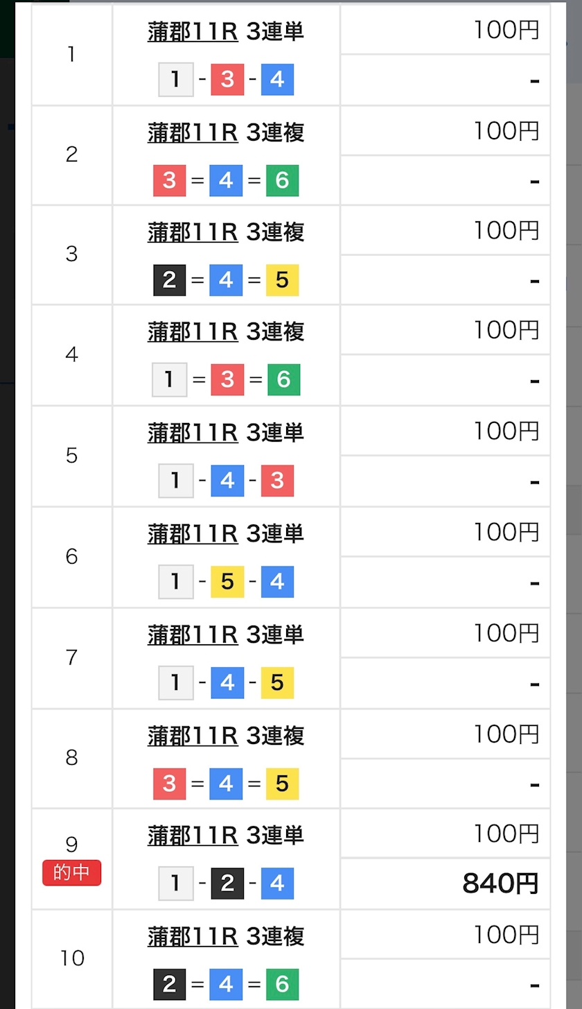 蒲郡11レースで三連単