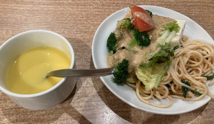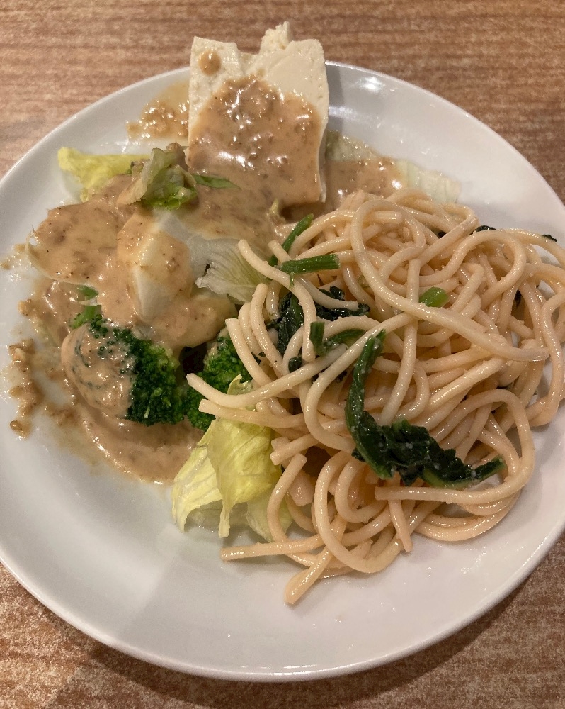 サラダバーにあるパスタで気持ちをおさえます✨