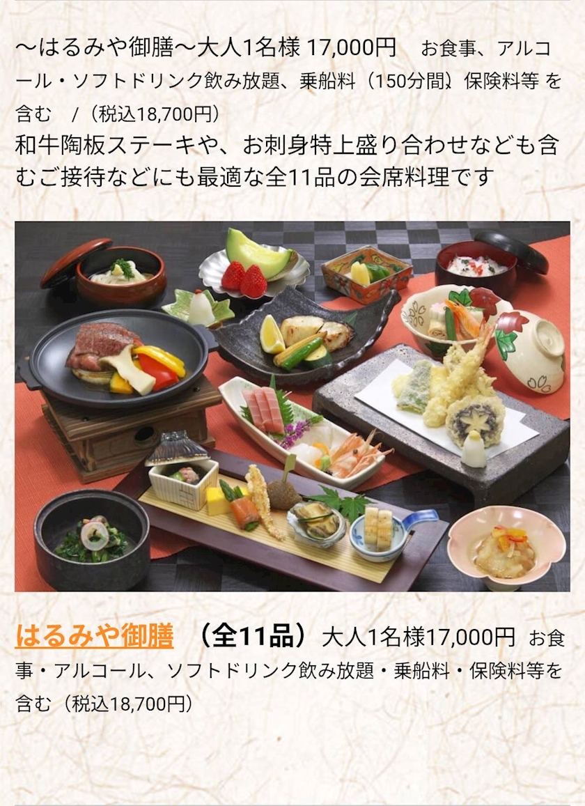 屋形船に乗ったことがないので、ごはんまで
