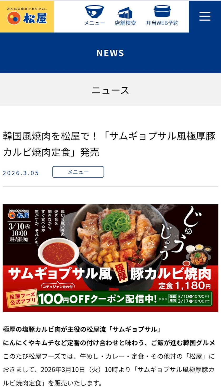最近行けていない松屋の新しいメニューが