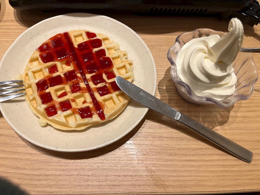 ワッフルの上にアイスのせてたべるという