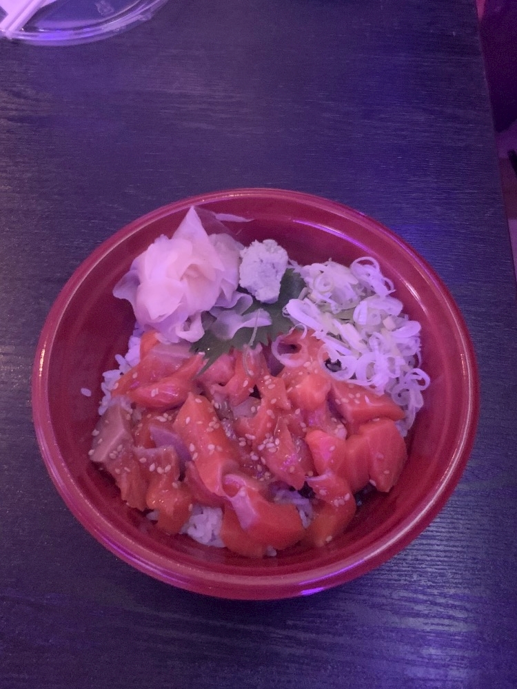お店で食べたサーモンユッケ丼です🐟