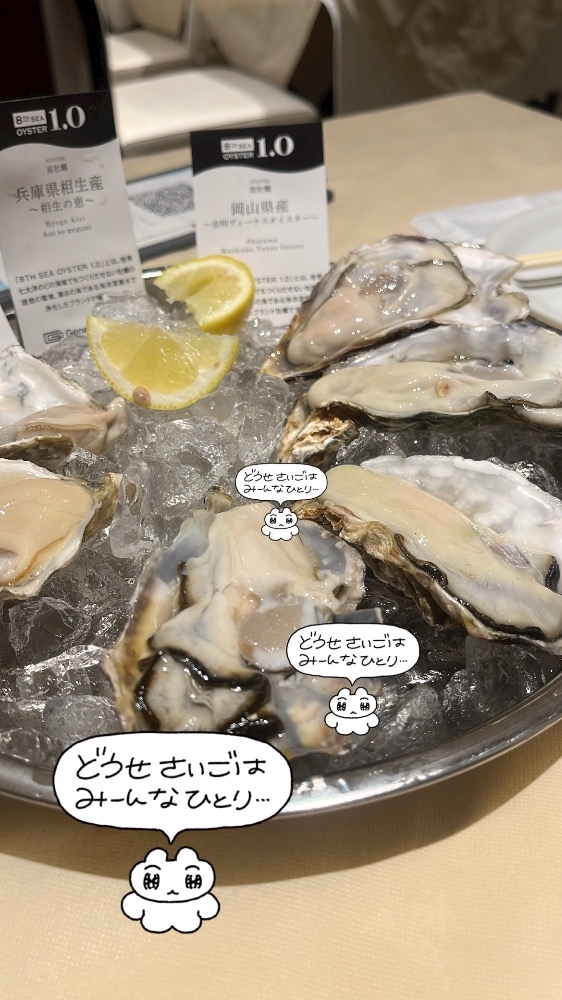 (牡蠣って)(エロいですよね)(えっちだ)(あたらないなら)(目一杯食べたい)