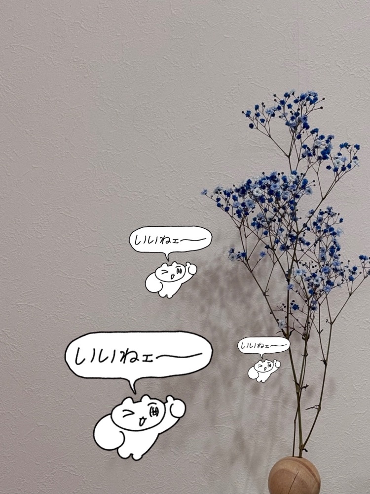 (今週のお花は)(かすみ草です)(なんか人気ですよね)(おもちゃみたいな色だったから)(つい)
