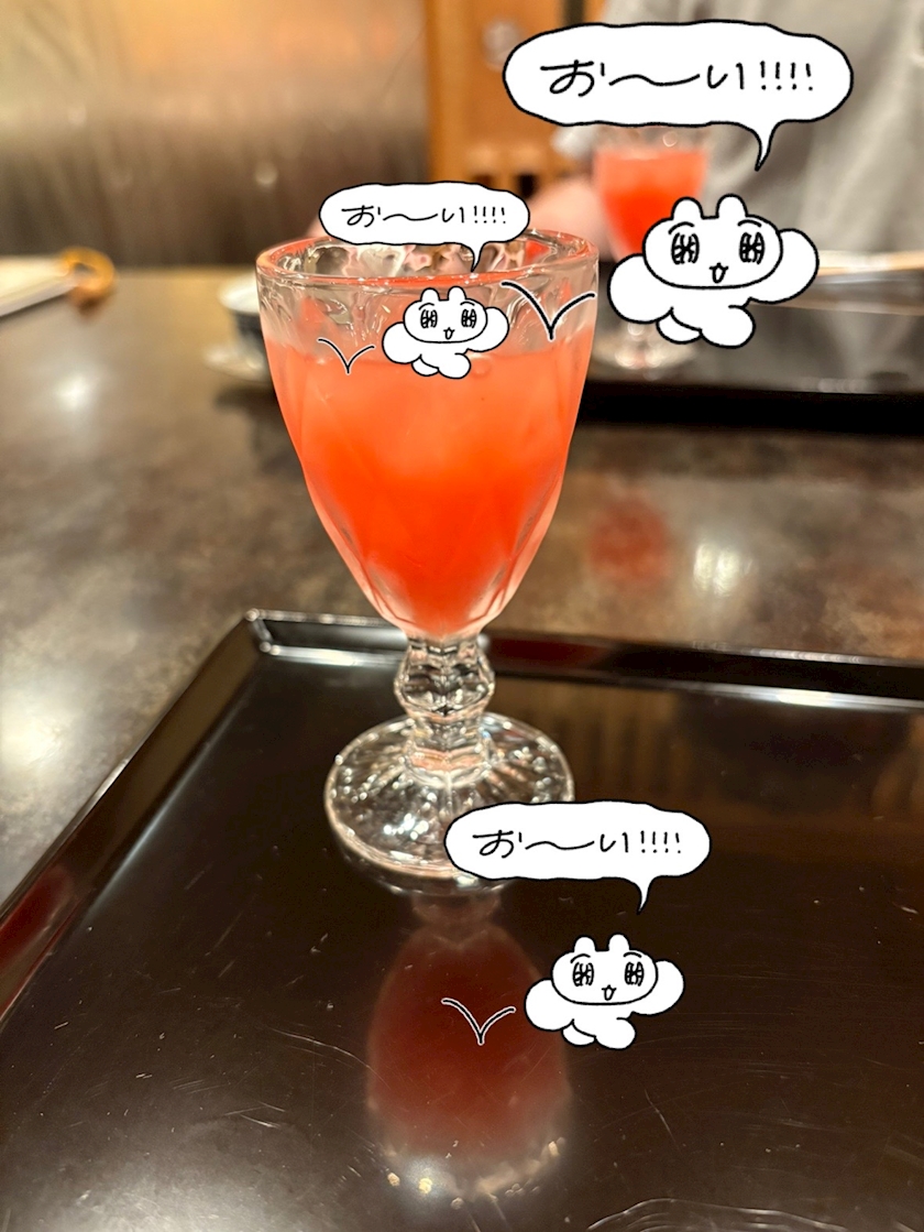 (上等なご飯)(食前酒)(シロップの味した)(さくらんぼって書いてたけど)(いちごでよかった)