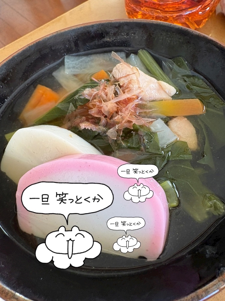 (実家のお雑煮は)(このスタイルですね)(おいち)(ママが分身してくれれば良いのに)