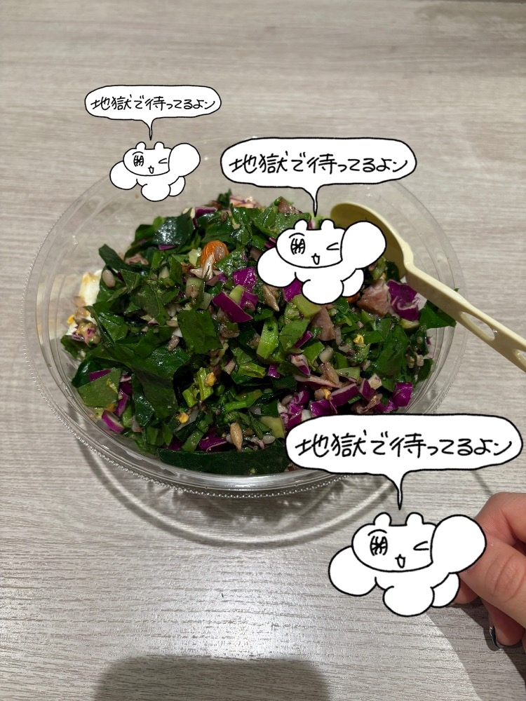 (毎日サラダ生活)(毎回毎回)(同じサラダを食べているので)(変わり映えがない)(歯キシキシ)