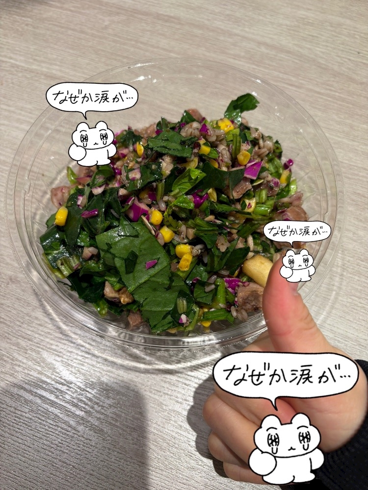(毎日サラダ生活)(ゆで卵って言ったはずなのに)(コーンになってました)(同じ黄色だからいいか)
