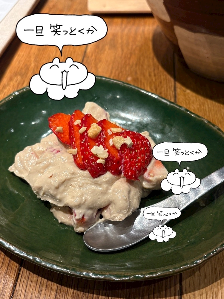 (いちごの)(白和え)(だそうで)(これめっちゃ美味しい)(いちごが好きなだけ)