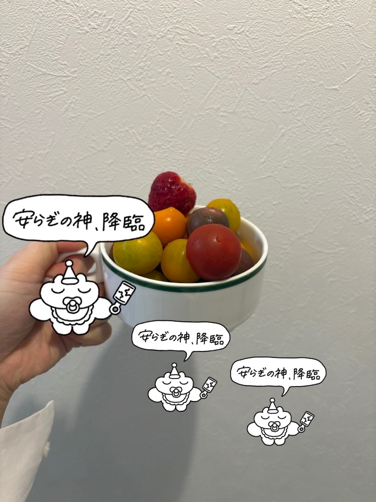 (おやつとなった)(カラフルトマト)(と)(いちごひとつぶ)(美味しかったです)