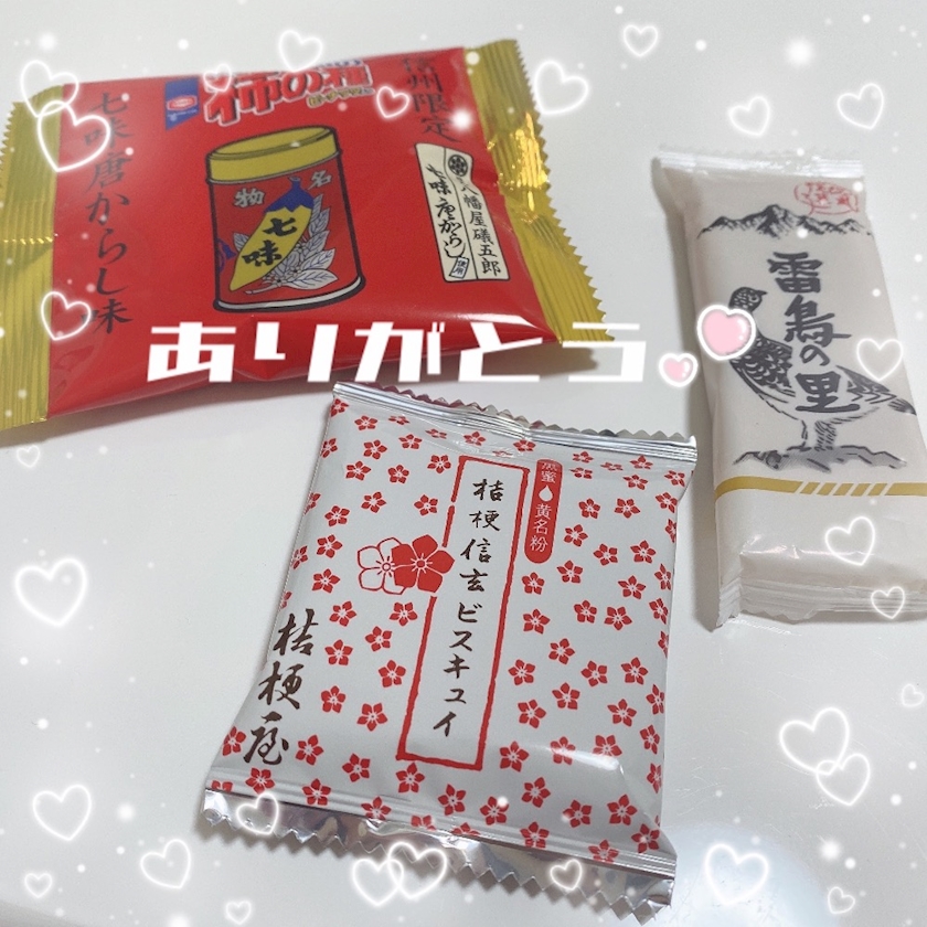 ふみかちゃんからいただいた長野のお土産たち🧡