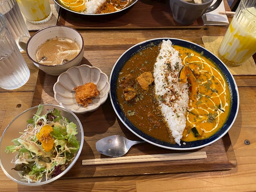 週替わりカレーのかぼちゃと豆乳のクリーミーカレーと、