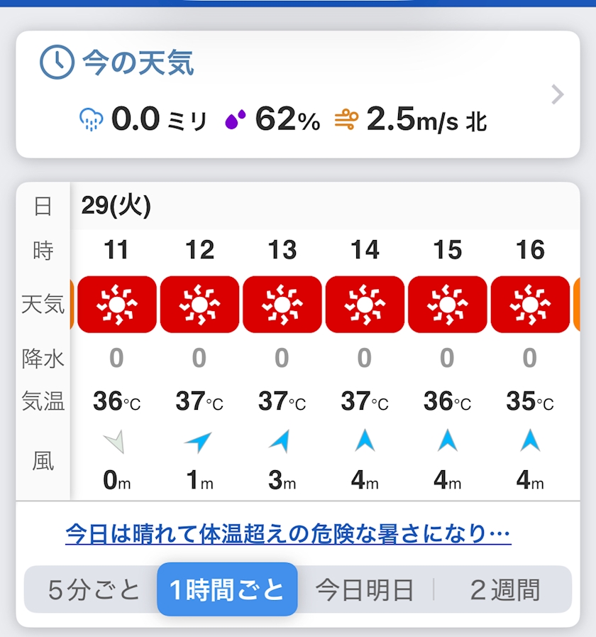 - 最高気温:37〜38℃前後