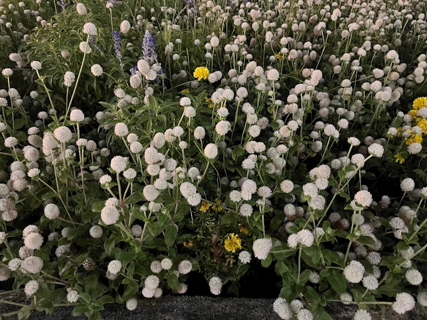 この写真の花は白色ですが、同じ品種で色違いを植えると、とてもカラフルな花壇になります。