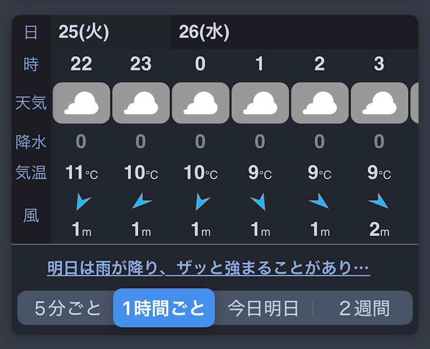 - 最低気温:5〜9℃