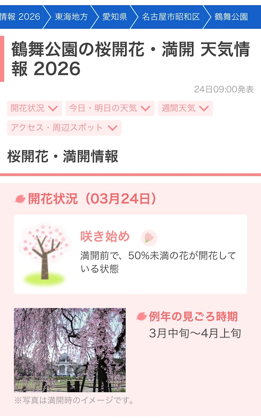 🌸 開花:3月24日〜26日ごろ