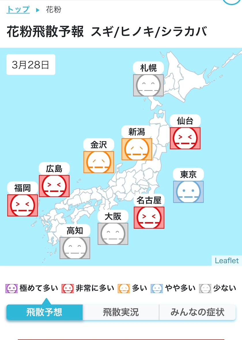 🌲今日(3/28)のスギ花粉情報(名古屋目安)