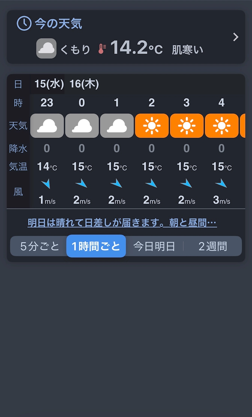 - 体感:ちょい肌寒い(薄手の上着ほしい)