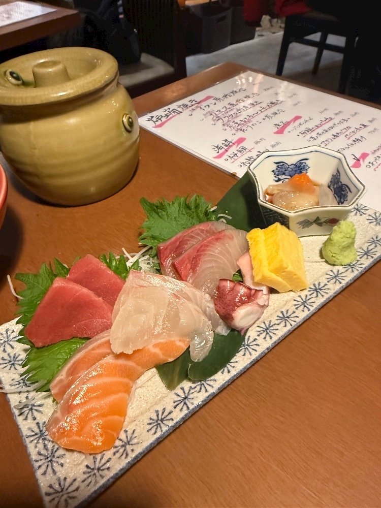お刺身もサラダも串カツも全部おいしかった!!