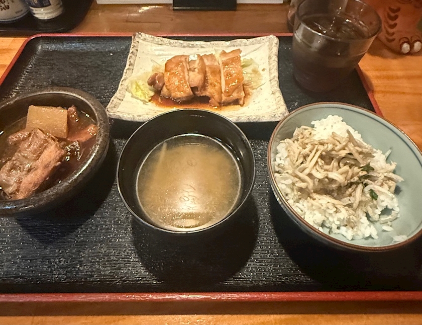 まずとりの照り焼きとごま油で味付けされたじゃこごはんが最高なの( ᵒ̴̶̷̤◦ᵒ̴̶̷̤ )