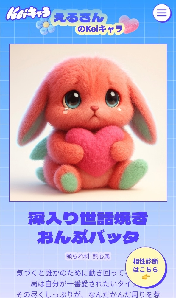 Koigram(コイグラム)というマッチングアプリ運営サイトの「Koiキャラメーカー/恋キャラ診断」っていう診断!!