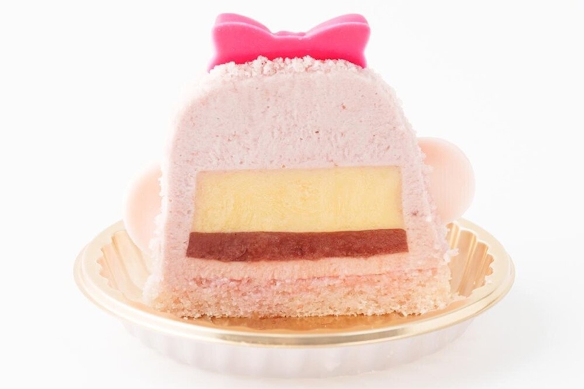 ラズベリーのババロアで、名古屋コーチン卵を使ったホワイトチョコプリンと甘酸っぱいいちごのジュレを包み込み、ふんわりとなめらかな口どけに!