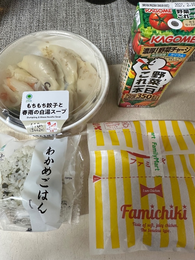 春雨スープ&おにぎり&ファミチキでした😋🍖