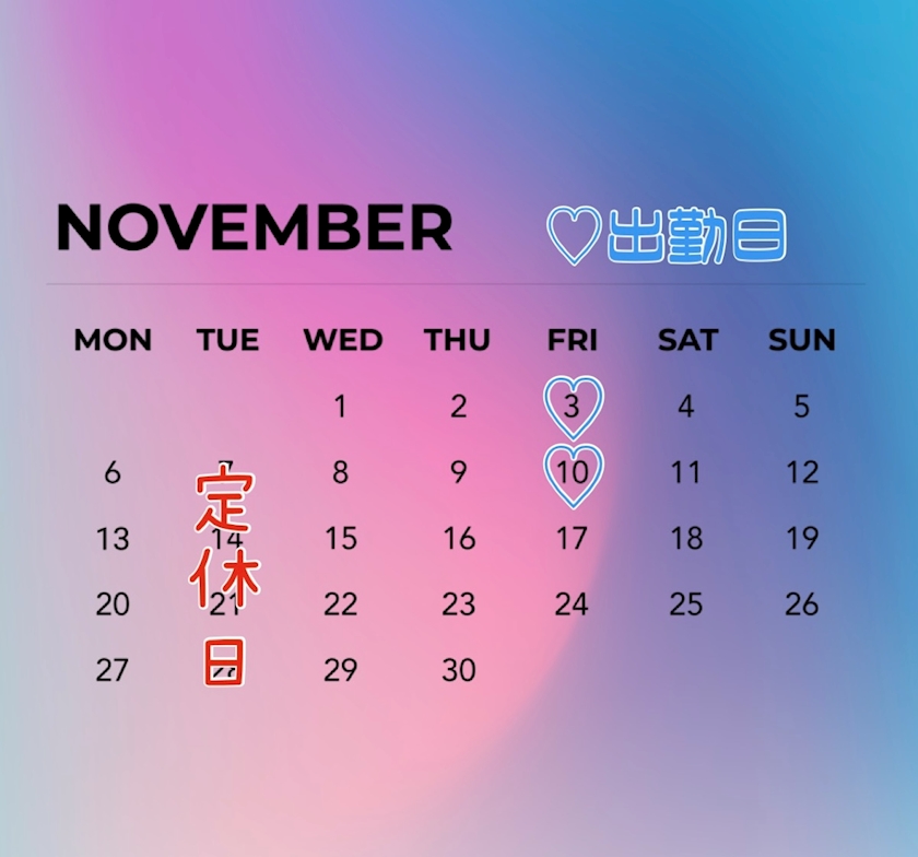 不定期出勤なので決まり次第更新します🩵