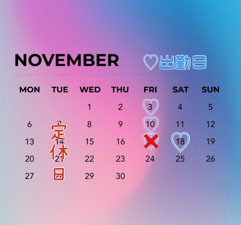 不定期出勤なので決まり次第更新します🩵