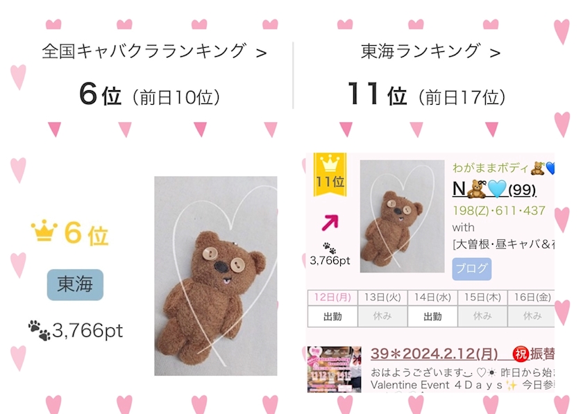 キャバクラランキングが1桁に✨️