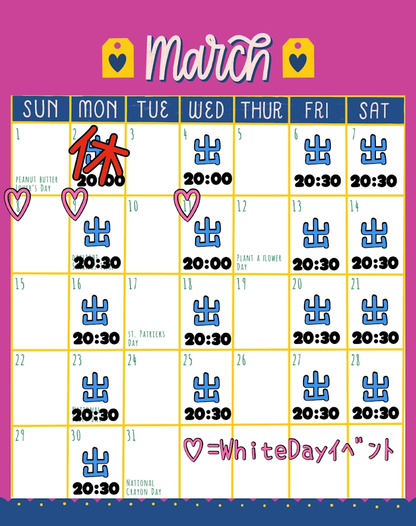 💗今月の出勤日💗