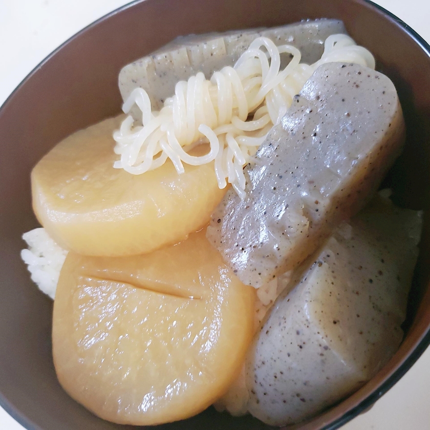 丼茶碗に白ご飯入れておでん乗っけて