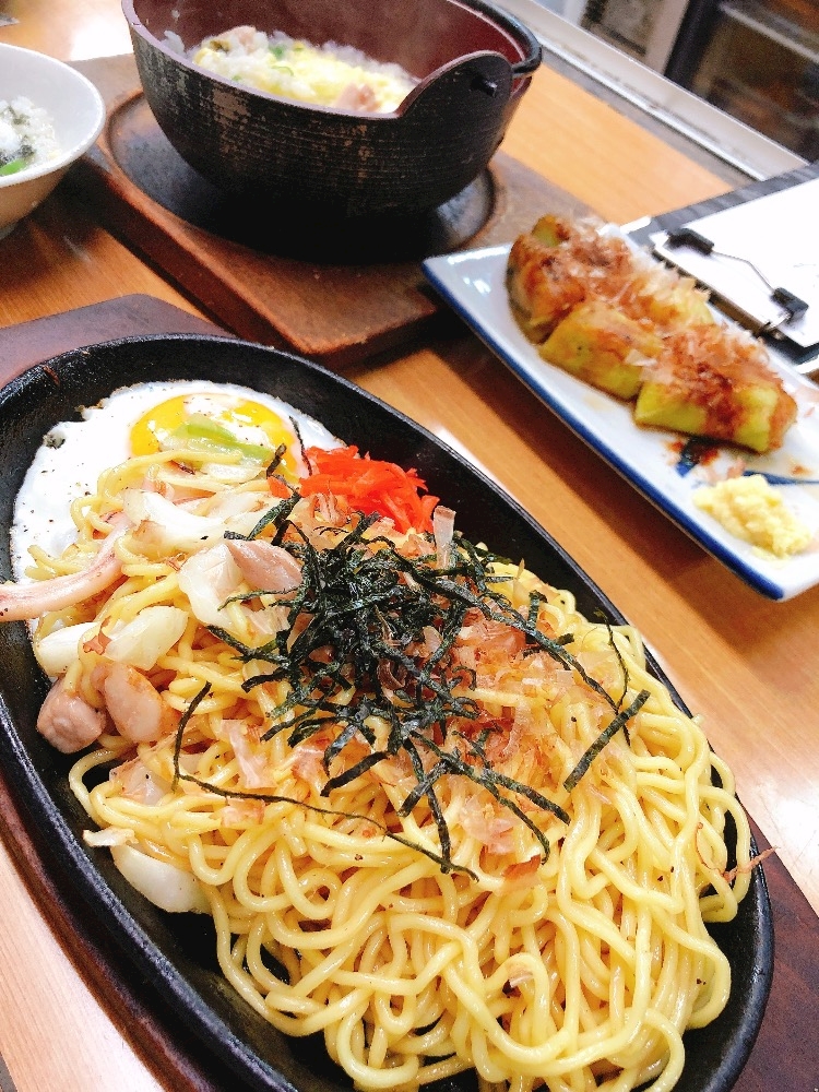 〆に鶏雑炊と塩焼きそば頼んだ〜!!