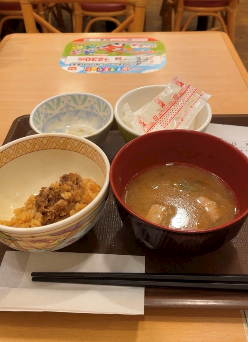 帰りに一人すき家してきた( ᐛ )