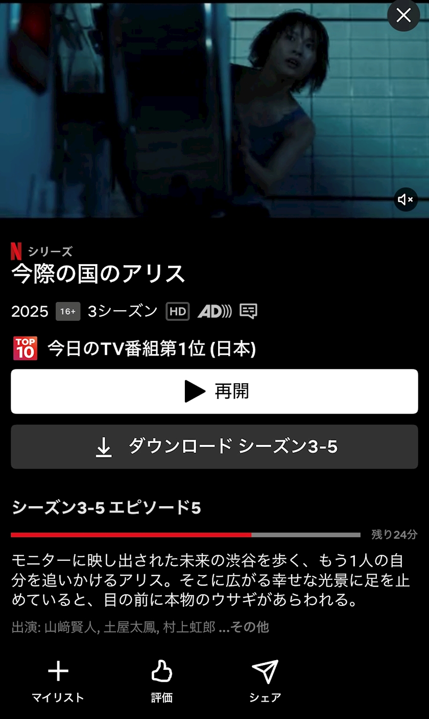 ネトフリは今際の国アリスをみてるよ〜