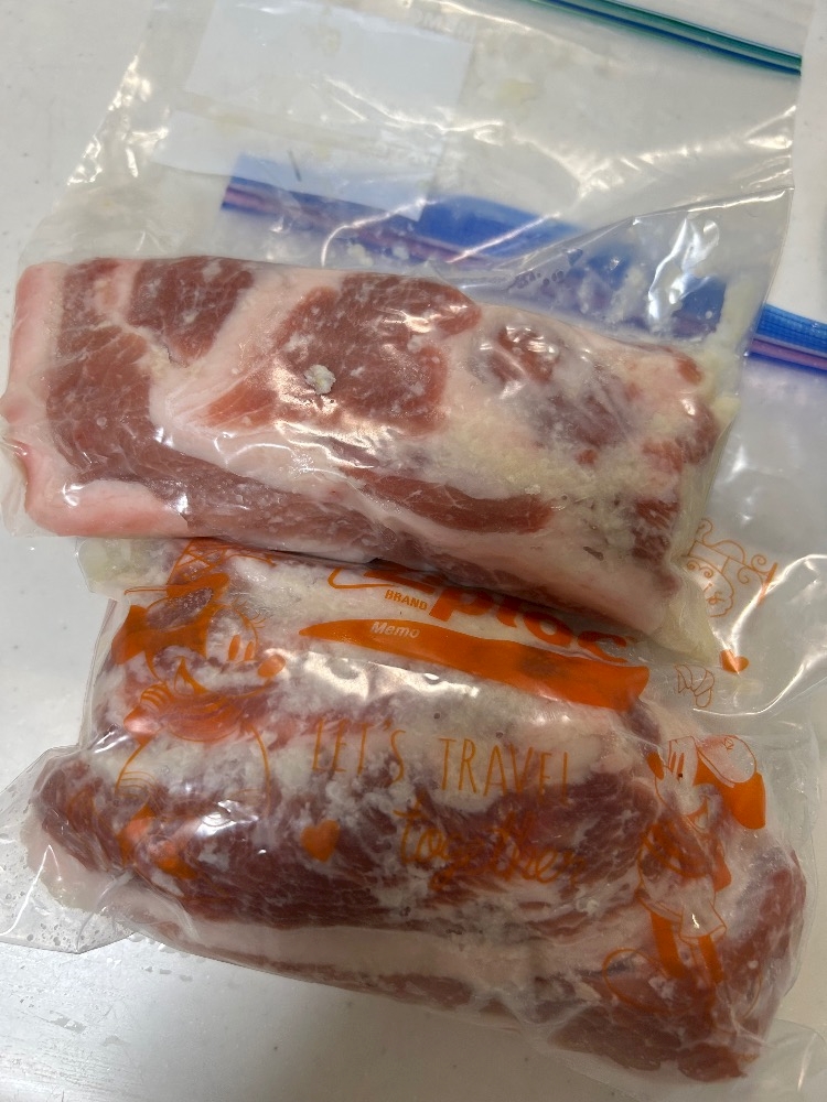 塩麹に豚バラ漬け込みます!